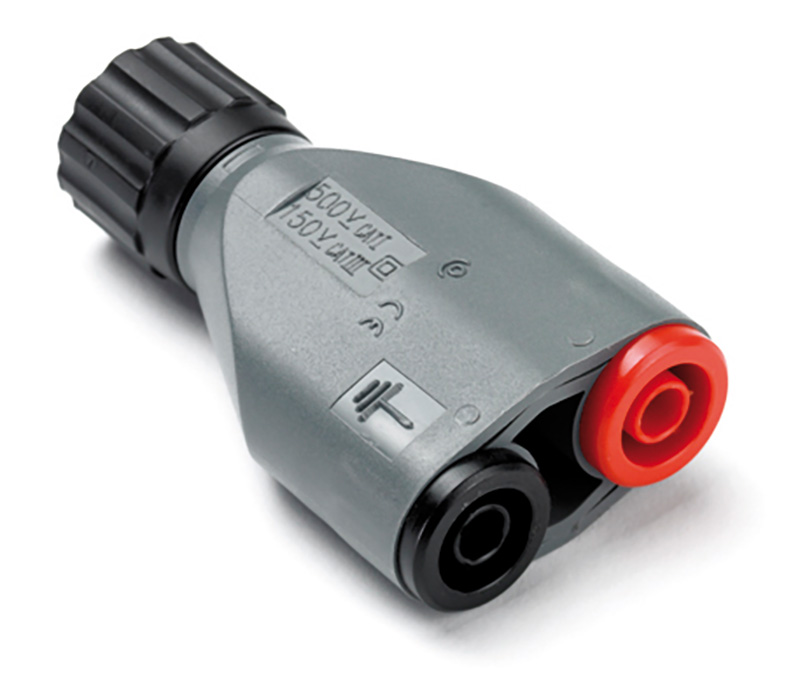 The BNC to 4 mm adapter connects two 4 mm (“banana”) plugs to a BNC socket. If you have a sensor such as a current clamp with 4 mm plug outputs, for example, this adapter allows you to plug it into a PicoScope Automotive Oscilloscope with a BNC input. The 4 mm sockets and BNC plug are fully shrouded for safety.