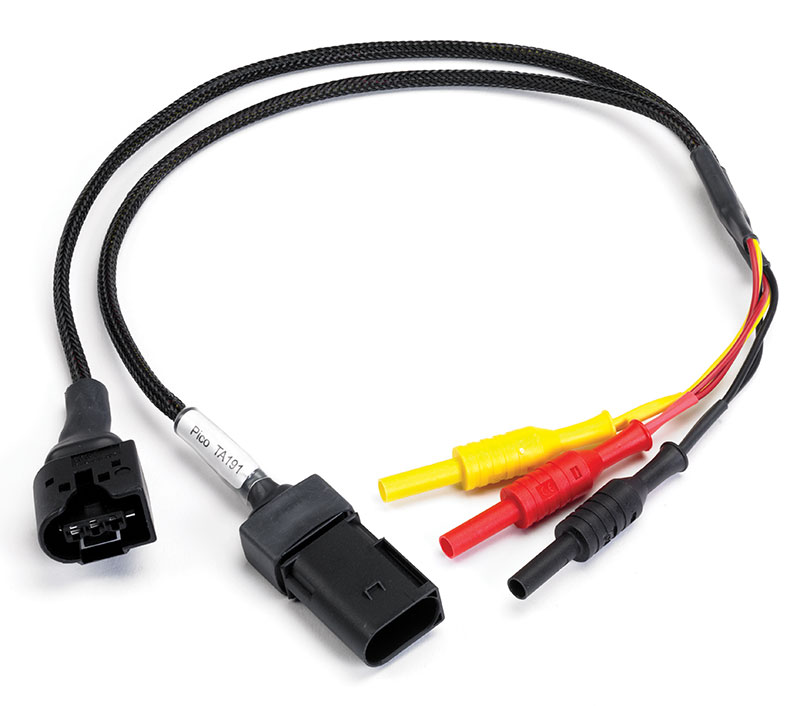 the 4 mm banana plugs into the automotive oscilloscope via one of the PicoBNC+™ Test Leads. Our breakout leads also