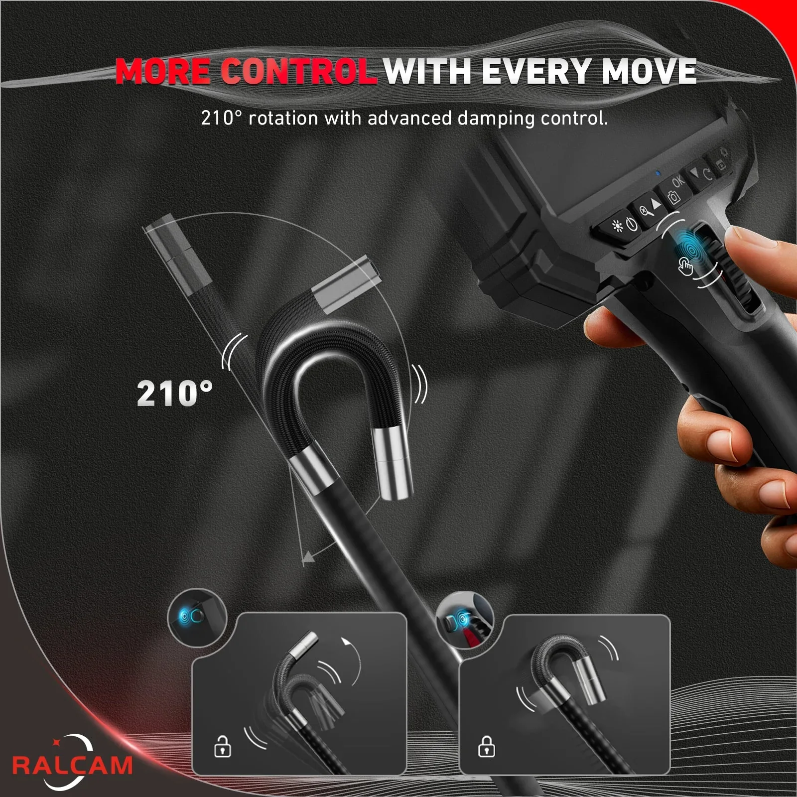 The Ralcam N505 2-way Borescope is ideal for automotive and industrial inspection. It has 2-way articulation, allowing for easy access to tight engine spaces. With its 5" IPS HD screen, you can see details clearly, and its 1280×720 resolution and bright LED lights ensure sharp images anytime.