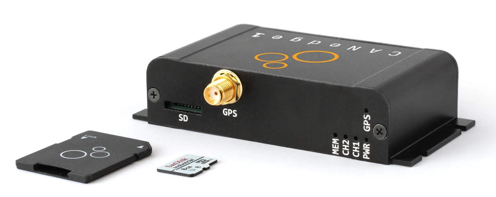 The plug & play 2xCAN/LIN logger records timestamped CAN data (Classical/CAN FD) to the extractable 8 GB industrial SD card.