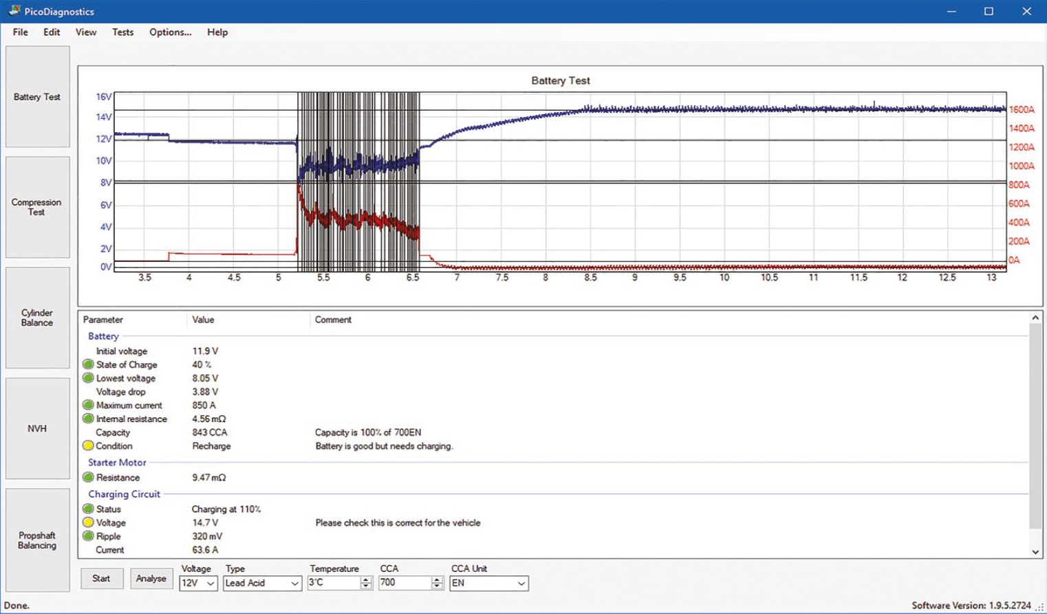 Also included when you install PicoScope 7, is PicoDiagnostics software to quickly test batteries, alternators, starter motors, compression, cylinder balance, Noise Vibration and Harshness (NVH) and can even balance a Prop-shaft on the vehicle. Professional reports allow you to show your customer what you have checked and any problems you have found.
